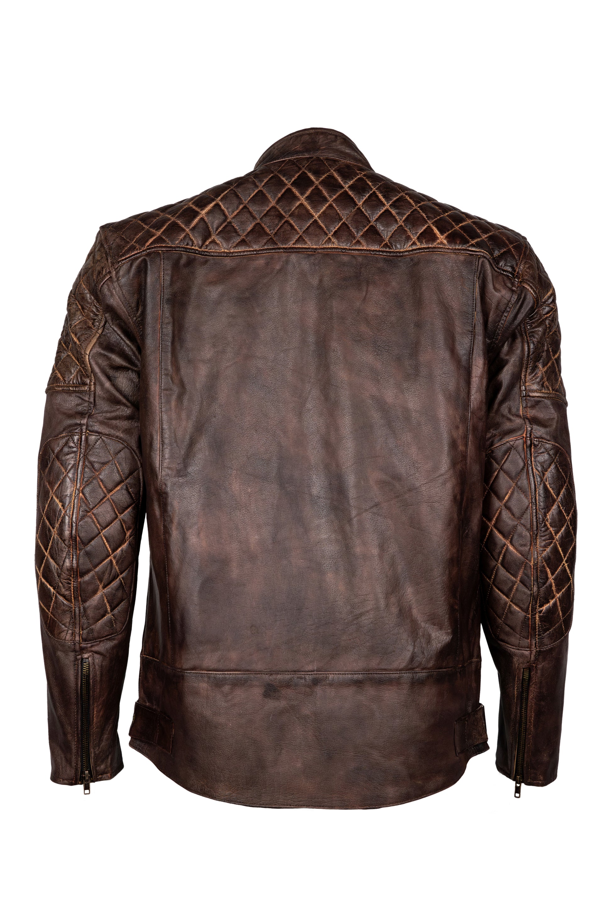 Mens Leather Motorcycle Jacket in Distressed Rusty Brown with CE Armour included (BBGLJV2).
